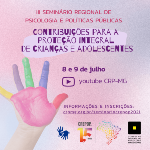 O Conselho Regional de Psicologia – Minas Gerais (CRP-MG) realiza, por meio do Centro de Referências Técnicas em Psicologia e Políticas Públicas (Crepop), o III Seminário Regional de Psicologia e Políticas Públicas. O tema desta edição é: “Contribuições para a proteção integral de crianças e adolescentes”.
